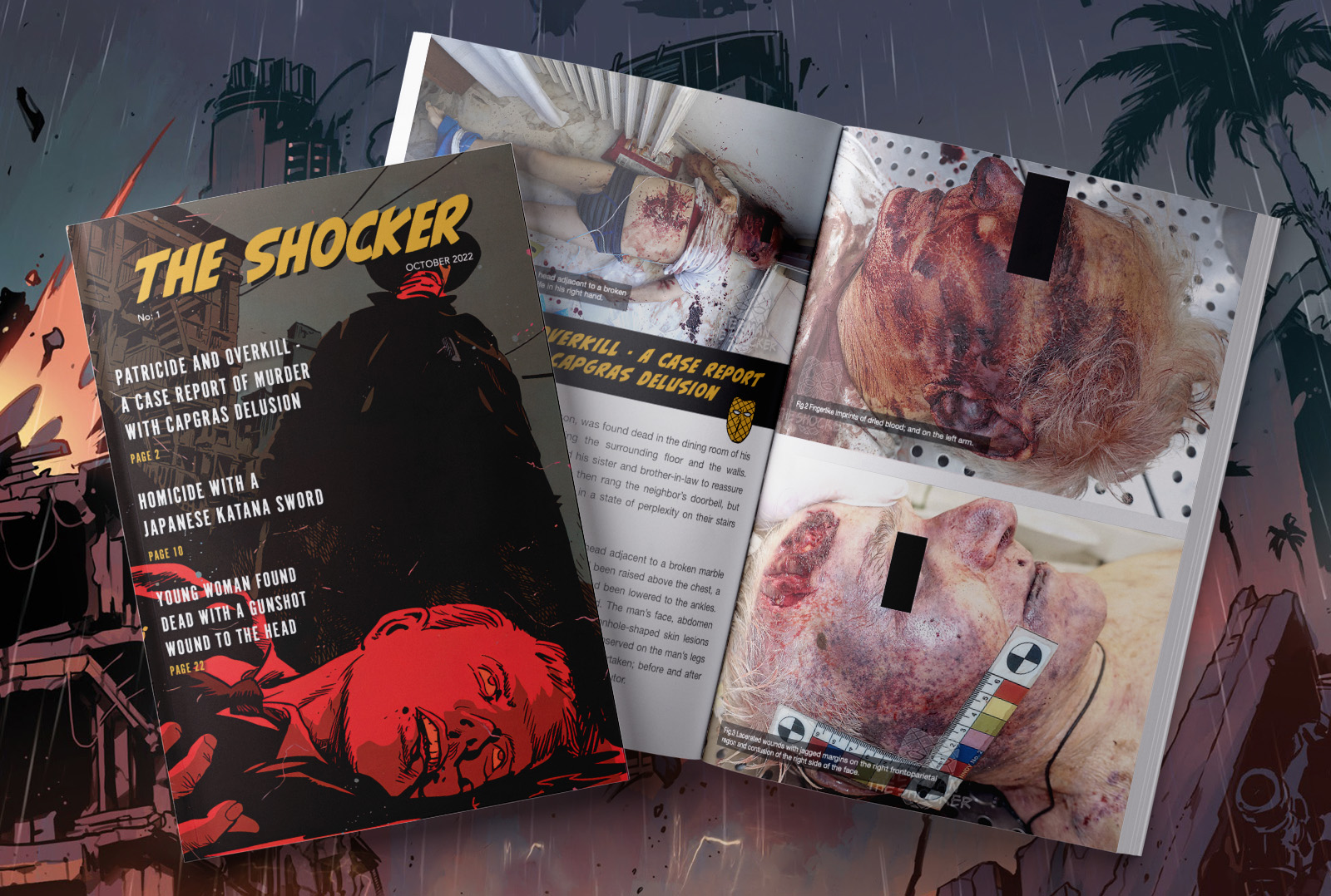 The Shocker brings you unfiltered views of reality and educational content from the world of crime, accidents, and forensics. Each magazine has about 50 pages of content and new exclusive content not posted on the website from the vault of the Shocker and only in a digital download format. Your support helps to cover the cost of running the website and allows me to continue sourcing new content.
