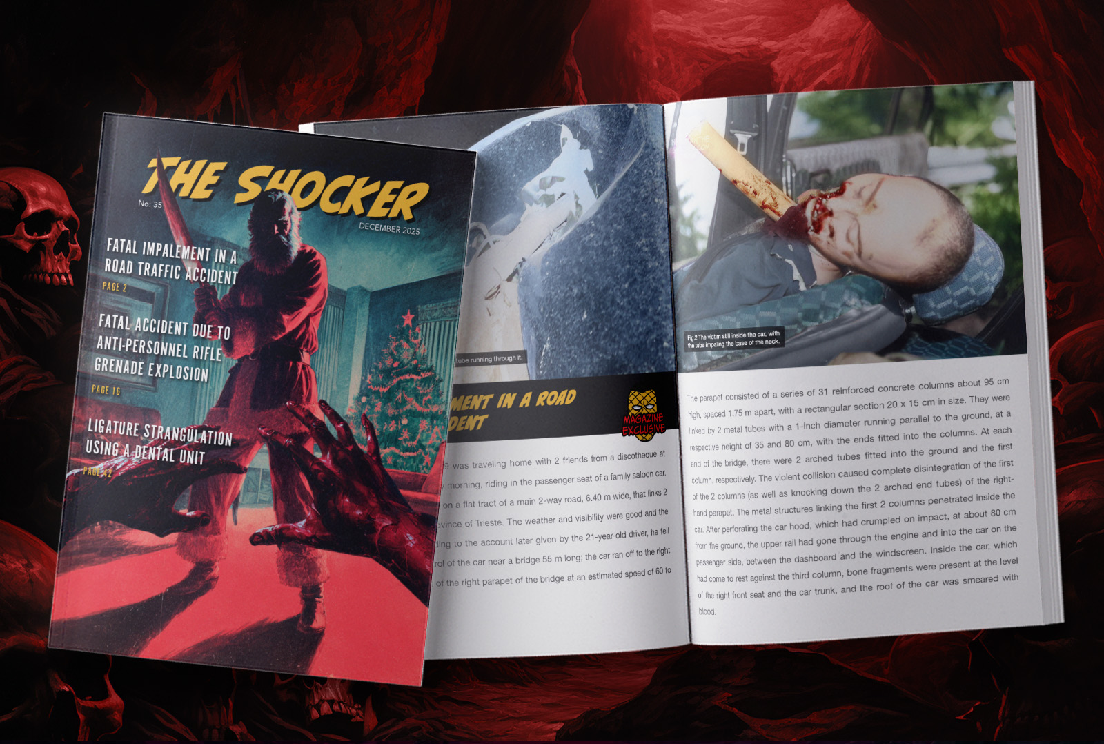 The Shocker brings you unfiltered views of reality and educational content from the world of crime, accidents, and forensics. Each magazine has about 50 pages of content and new exclusive content not posted on the website from the vault of the Shocker and only in a digital download format. Your support helps to cover the cost of running the website and allows me to continue sourcing new content.
