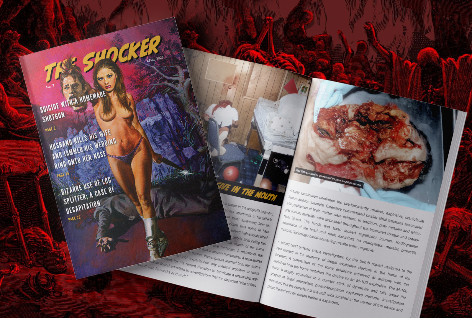 The Shocker brings you unfiltered views of reality and educational content from the world of crime, accidents, and forensics. Each magazine has about 50 pages of content and new exclusive content not posted on the website from the vault of the Shocker and only in a digital download format. Your support helps to cover the cost of running the website and allows me to continue sourcing new content.